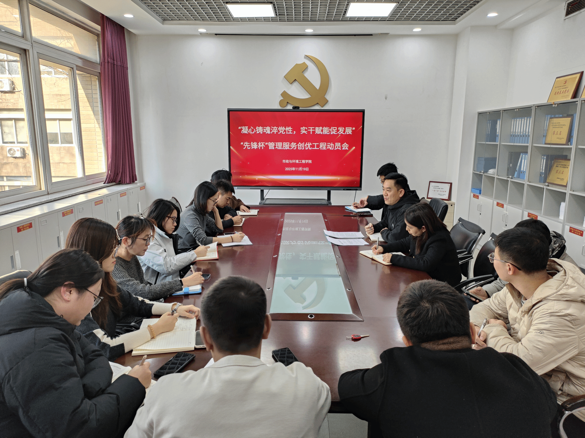 11月19日,市政与环境工程学院召开“凝心铸魂淬党性,实干赋能促发展”“先锋杯”管理服务创优工程动员会。会议由学院党委书记寇福生主持,学院领导班子全体成员、各教职工党支部书记及学院办公室、教学办公室、学生工作办公室全体成员参加了动员会。