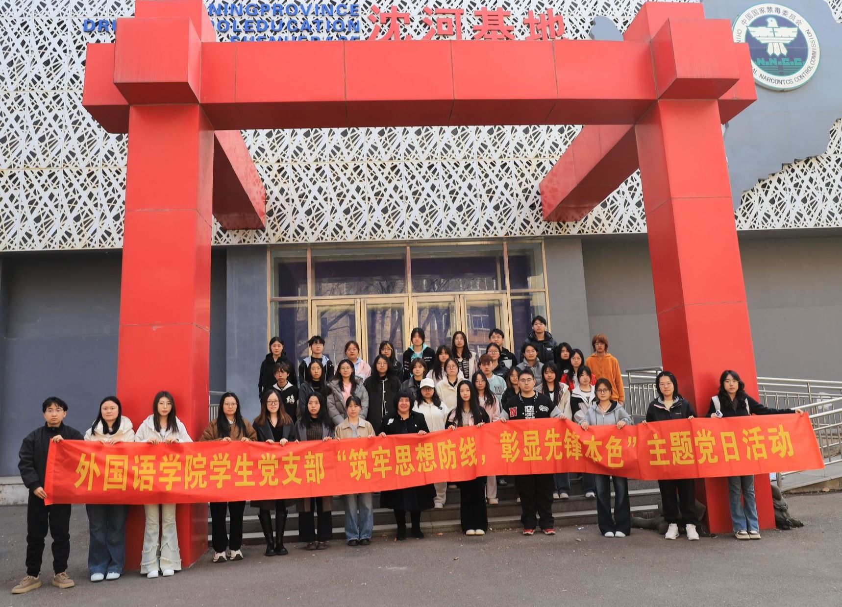 3月25日,外国语学院学生党支部在沈河区禁毒教育宣传基地开展了“筑牢思想防线,彰显先锋本色”主题党日活动,学院党总支副书记、副院长刘叶青带领全体支部党员参加了活动。